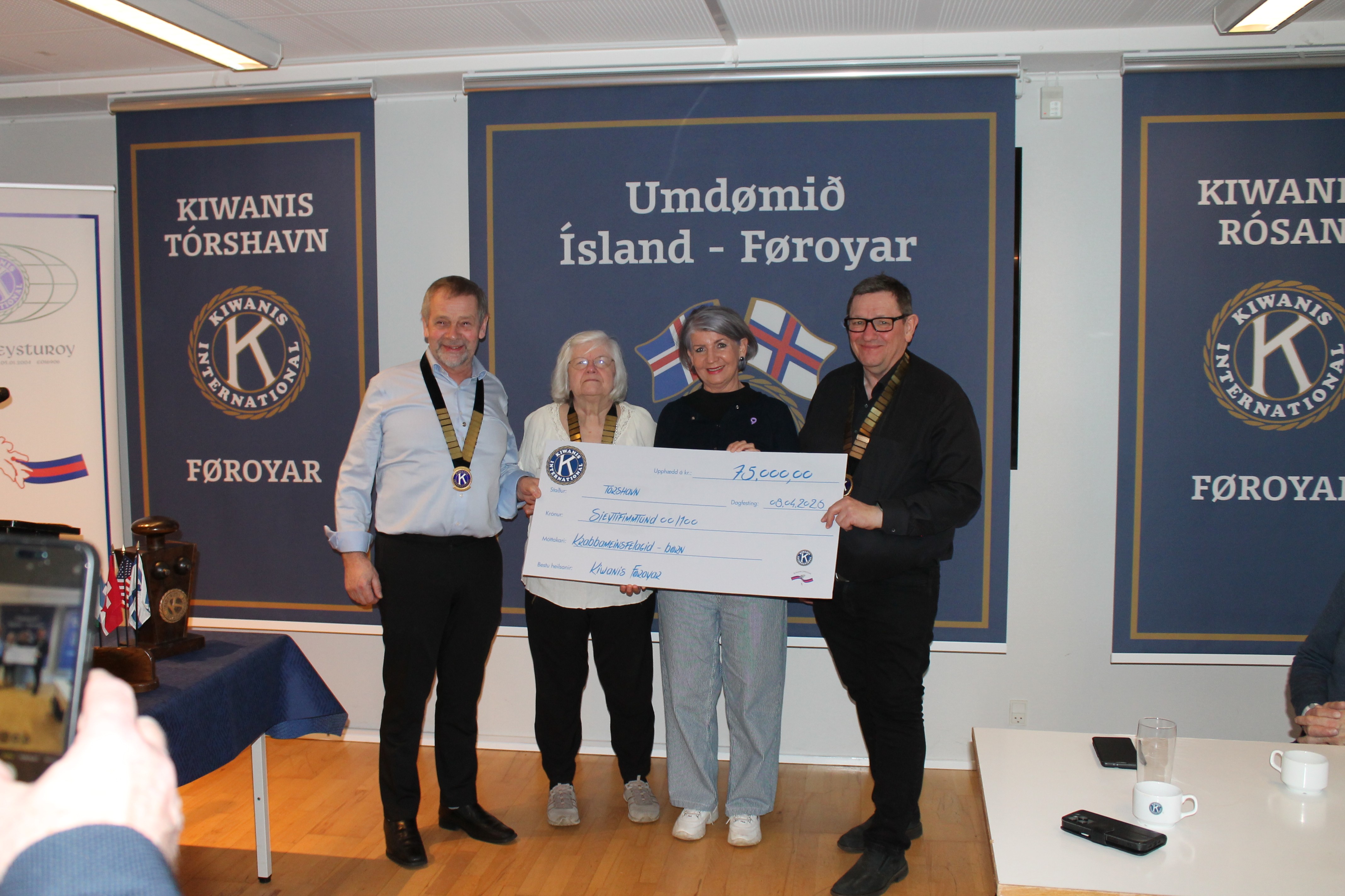 Á samkomu hjá Kiwanis hóskvøldið 9. apríl fekk Krabbameinsfelagið handað eina peningagávu á kr. 75.000,-