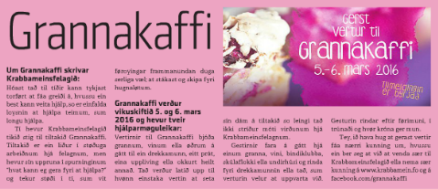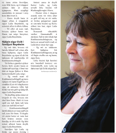 Tá ið Laila Reynheim misti mannin av krabbameini, sat hon einsamøll við fimm døtrum og einum stórum húsum í Havn. Ikki bara var hetta ein kreppustøða hjá teimum sum familja, men eisini fíggjarliga gjørdist dagligdagurin ógvuliga tungur fyri Lailu. “Eg visti ikki, um eg kundi loyva mær at venda mær til Krabbameinsfelagið, tá ið eg ikki var limur,” sigur Laila, sum eftir eina tíð tó setti seg í samband við felagið. “Eg eri so ómetaliga takksom fyri hjálpina, vit fingu frá Krabbameinsfelagnum, tí tey tóku sær av okkum sum familja.” Tá ið Laila so frætti, at Krabbameinsfelagið skipaði fyri Grannakaffi og lýsti eftir vertum, var hon onga løtu í iva um, at hetta var góður máti hjá sær at takka fyri hjálpina, hon og døturnar fingu.