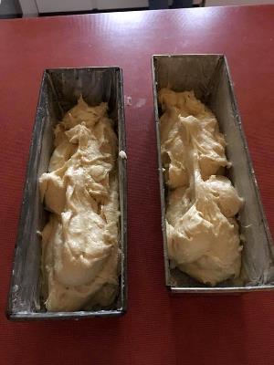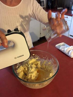 Rør sukur, margarin og egg væl og blanda mjølið varisliga í. Stoyt deiggið í tveir smurdar formar. Verður bakað í 50 min. (175°).